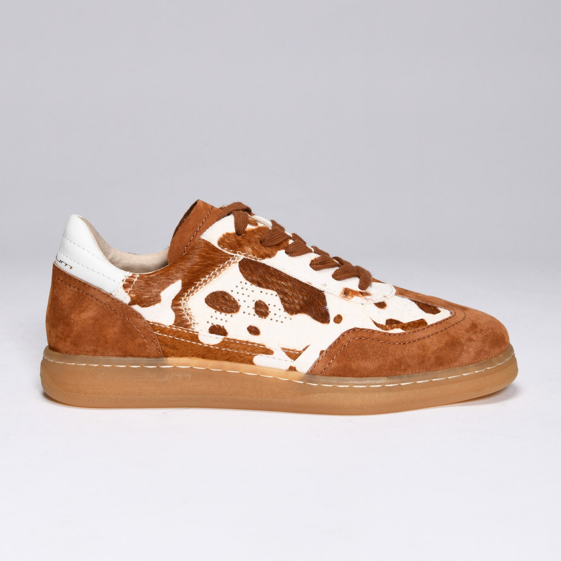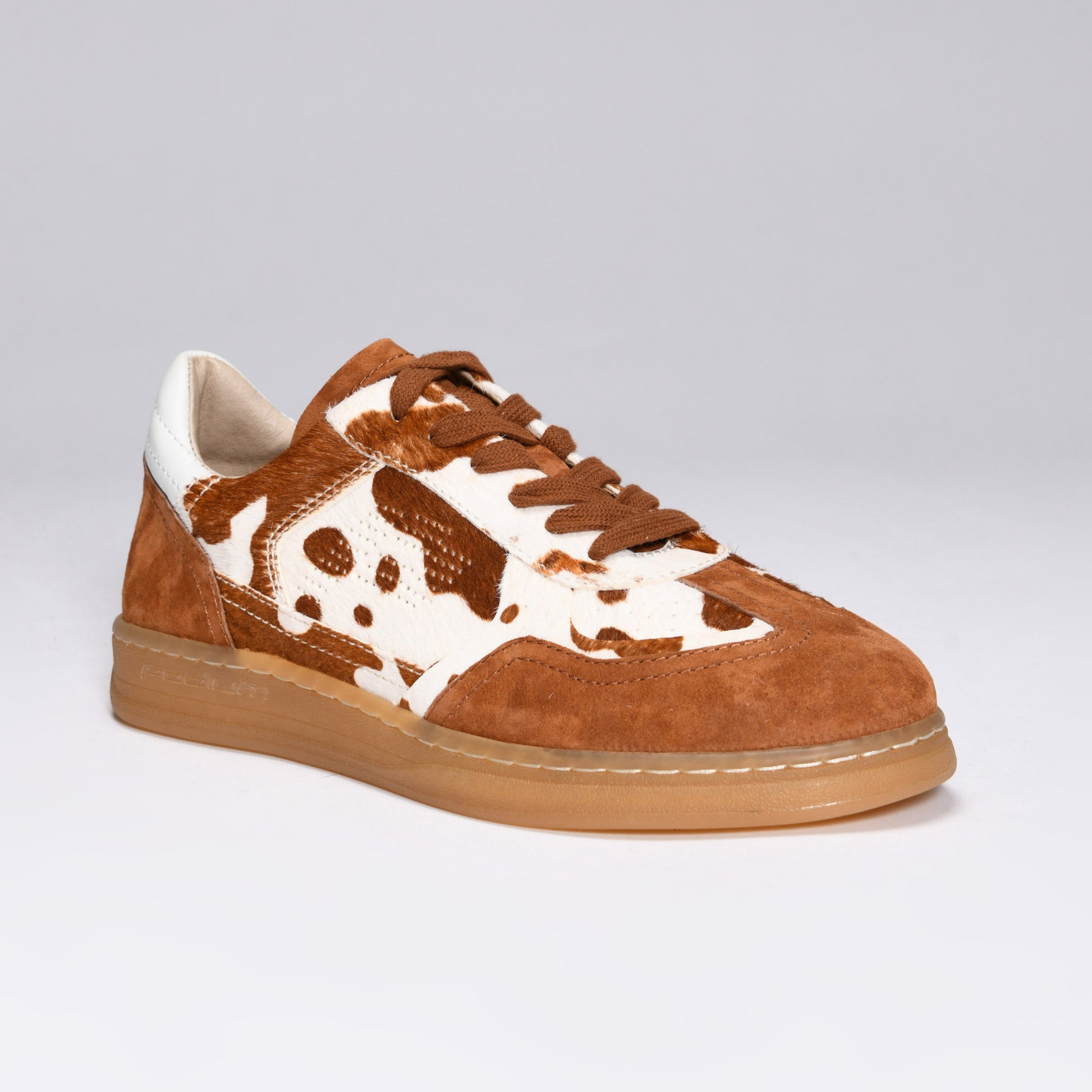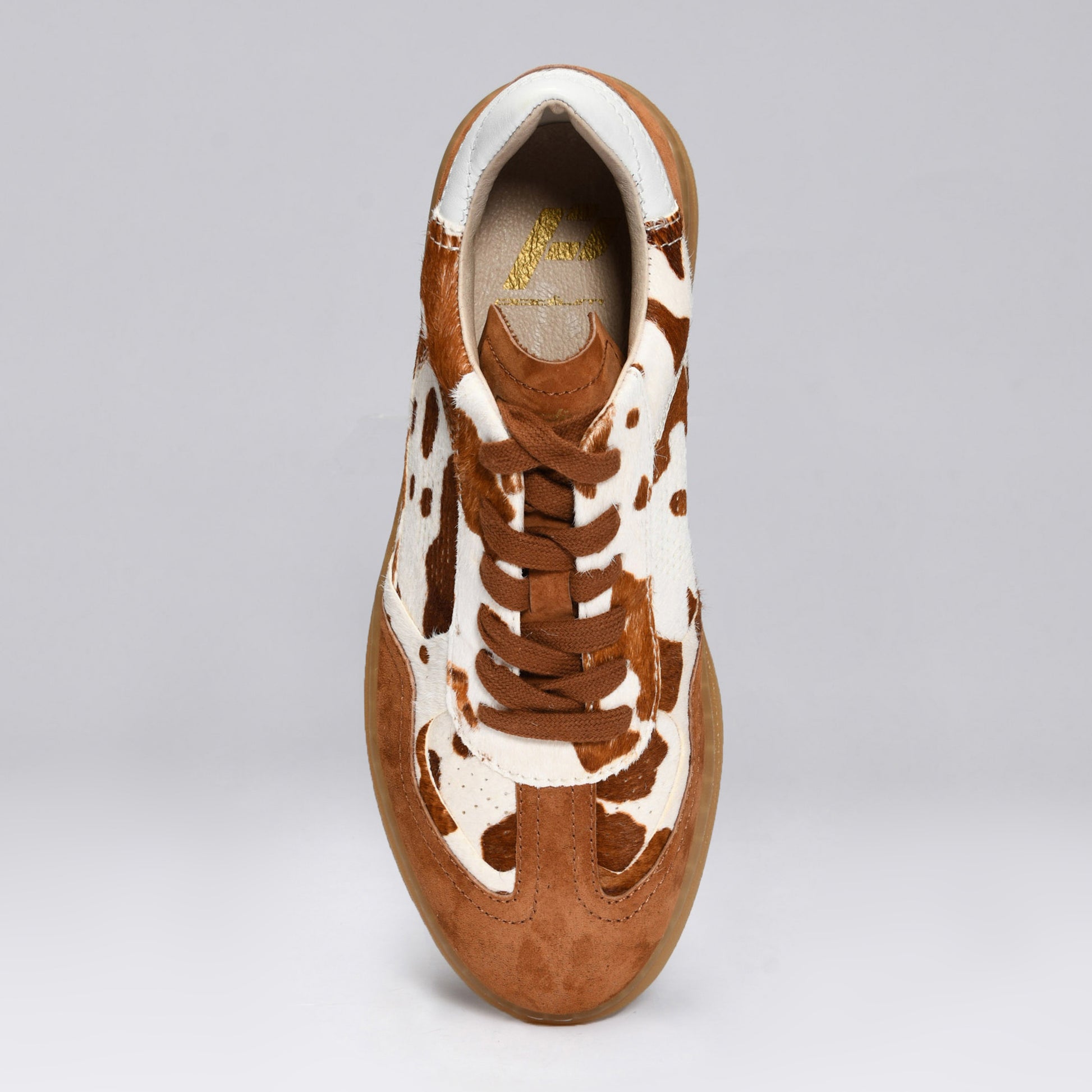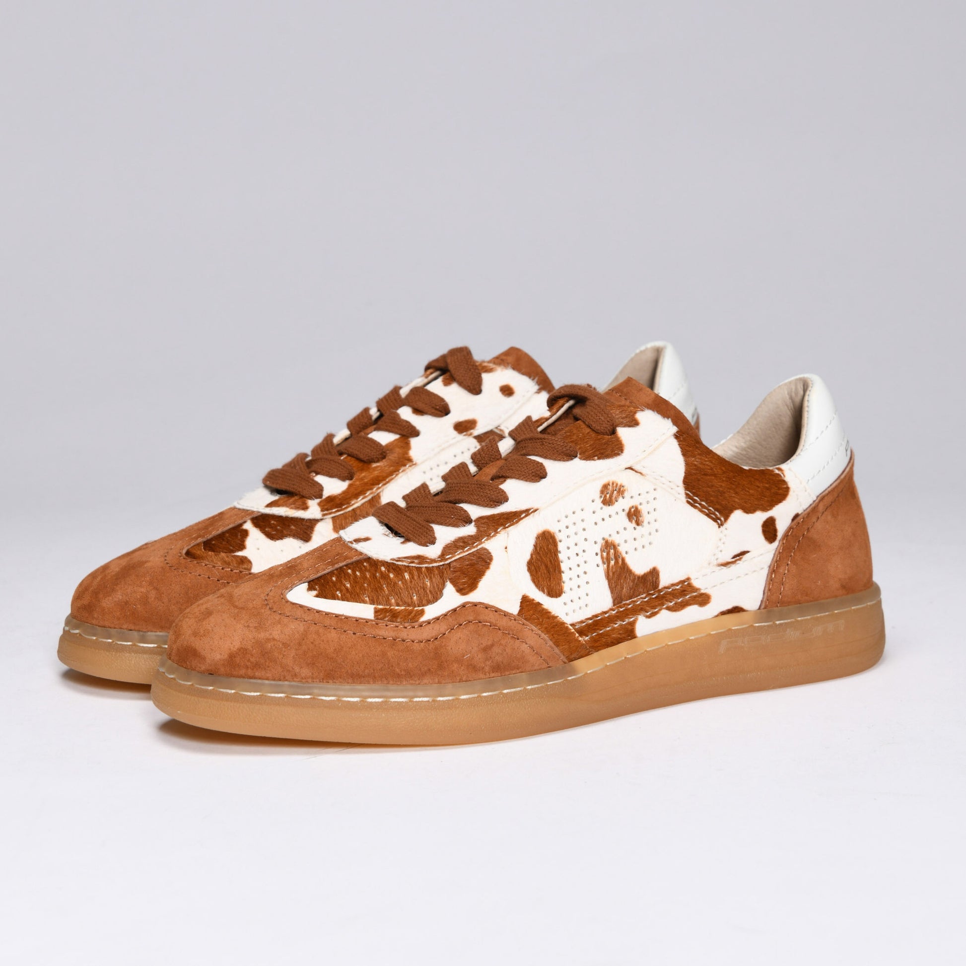 Our limited-edition animal print sneakers make a bold statement, perfect for any pace. With a brown and white pony upper and tan suede detailing, our cow print P1 GRAZER features natural terry and leather lining for breathability, padded insole, and external stitching for flexible durability. Like all of Podium’s P1s, it’s crafted with gum soles and includes both matching and contrasting laces, adding versatility to every look. Celebrate what makes you uniquely you with this limited-edition shoe.